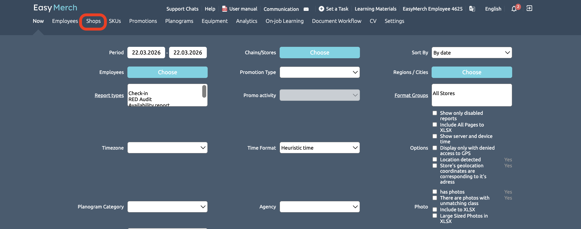 If an employee has a shops in their cluster, they can view all reports generated for that outlet by employees in the same role or lower down the hierarchy