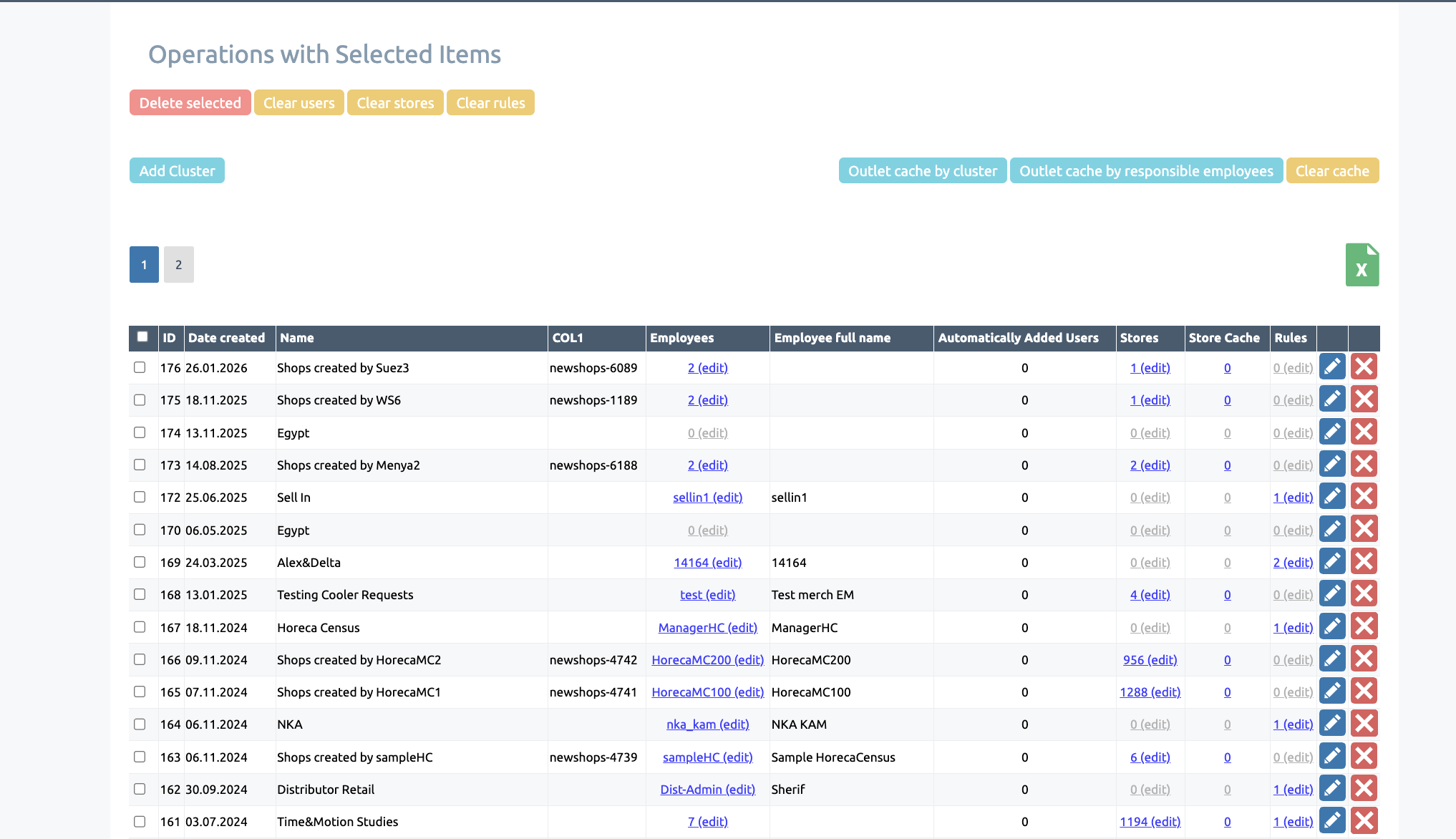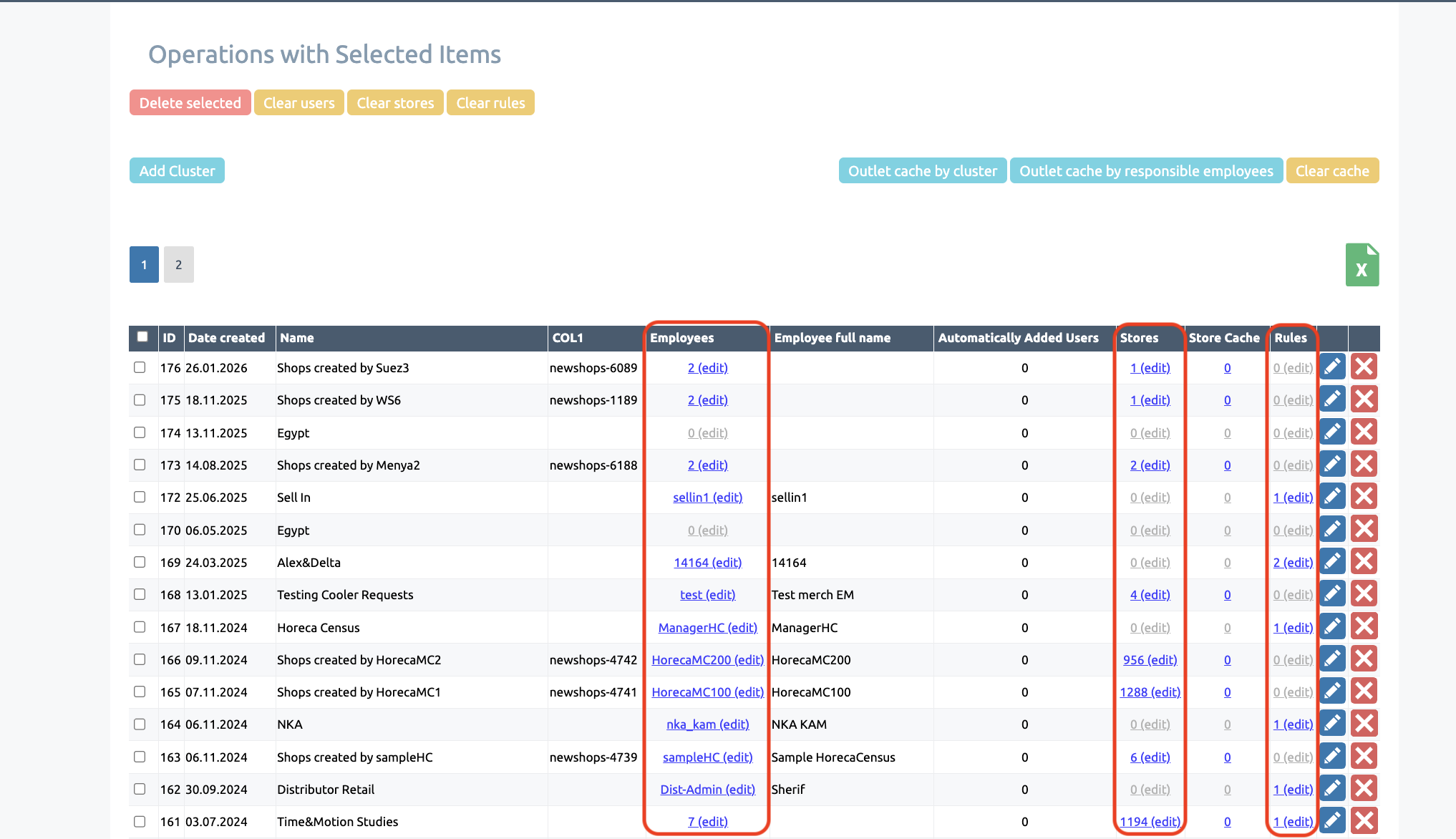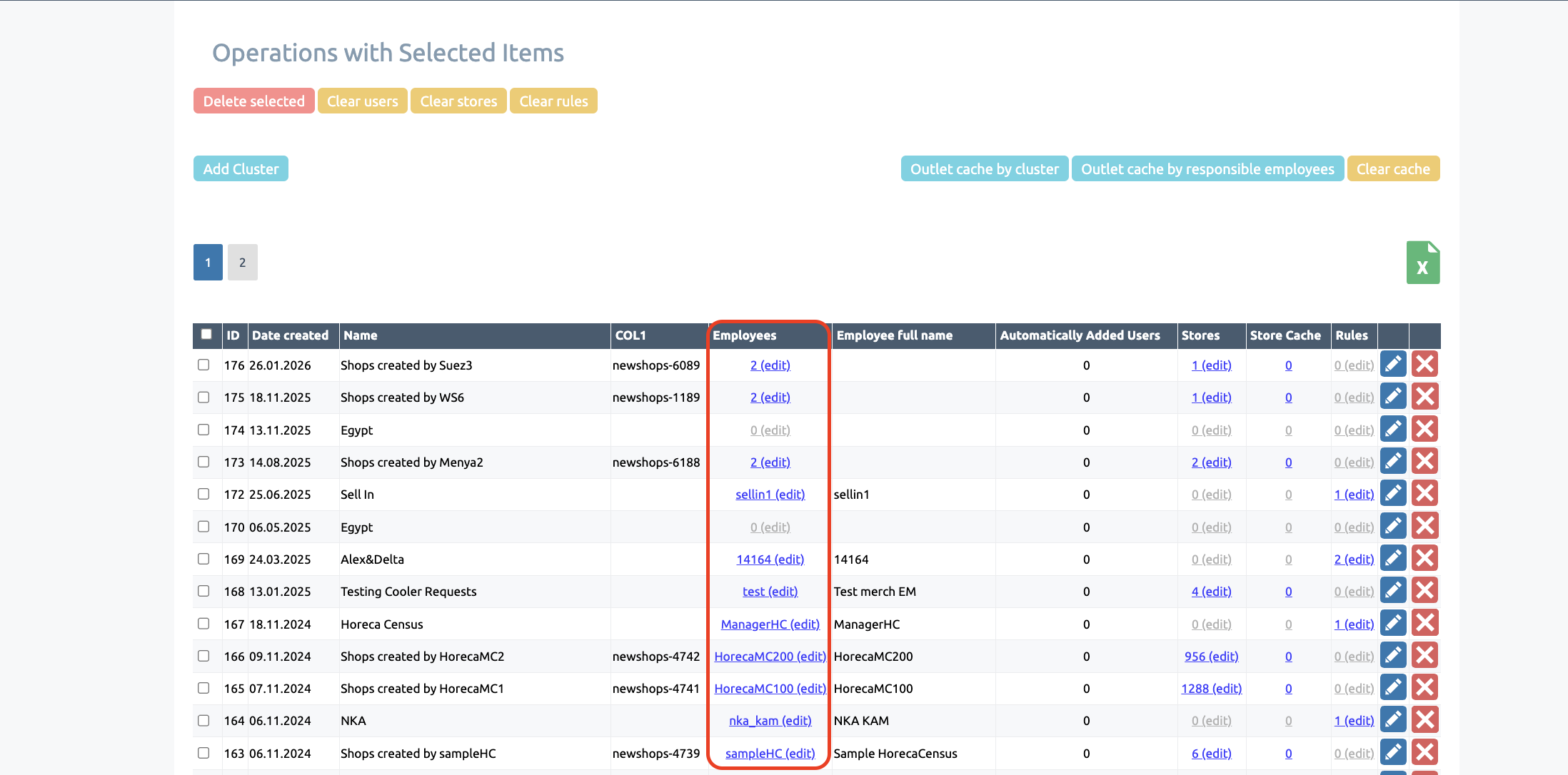 In addition, clusters allow you to update the assignment of outlets to users in bulk: adding a shops to a cluster will display it for all employees who have that cluster