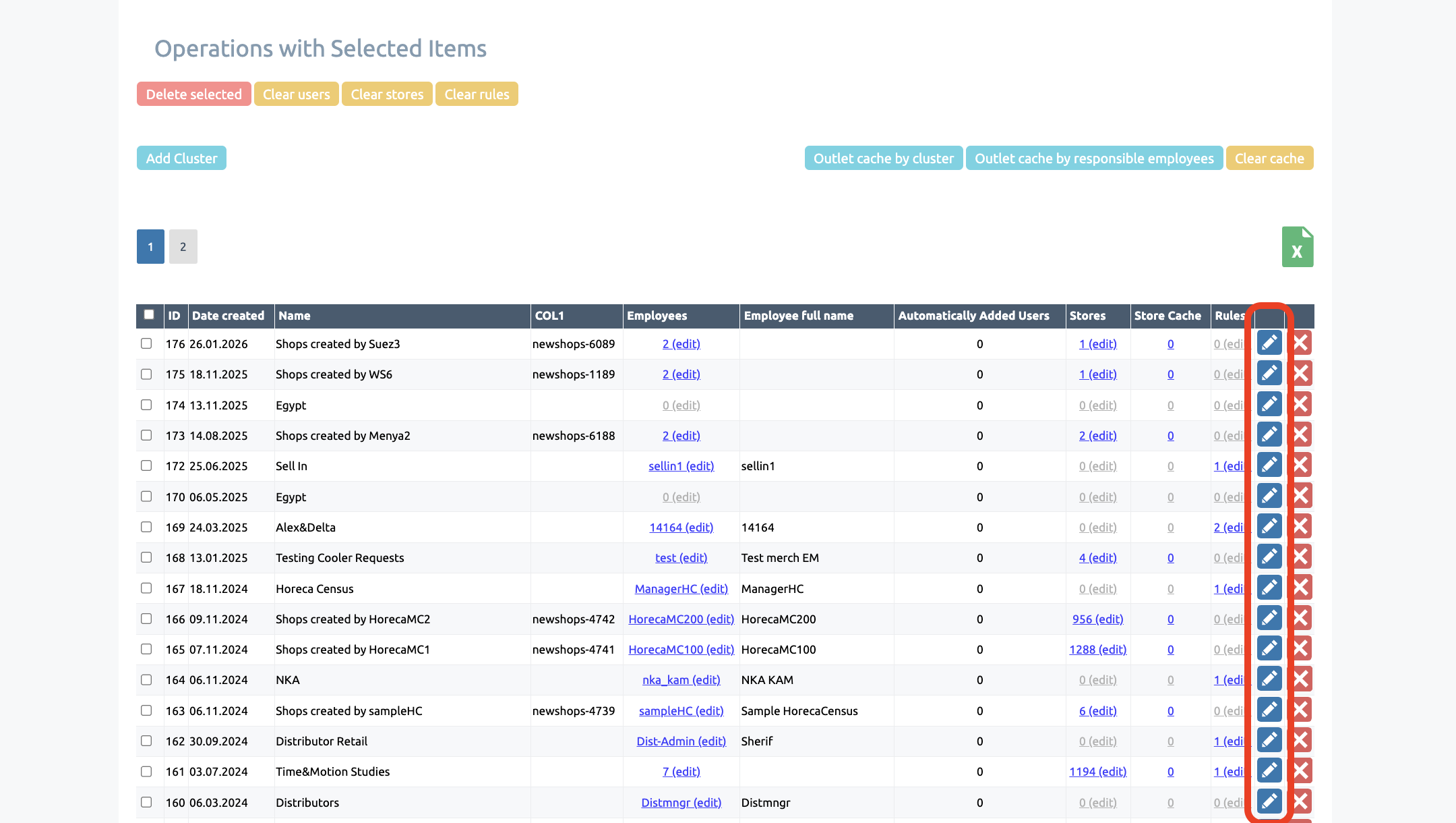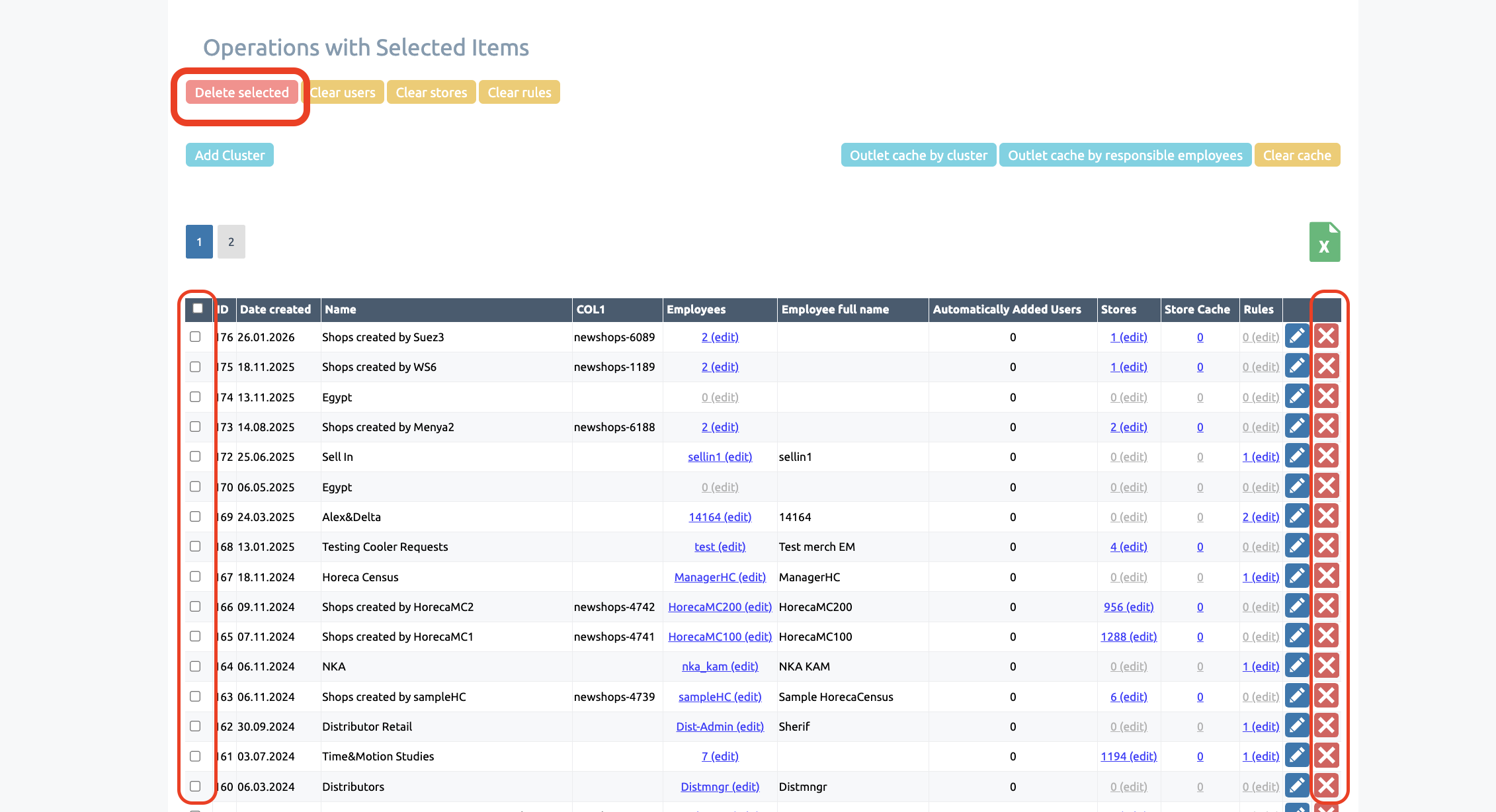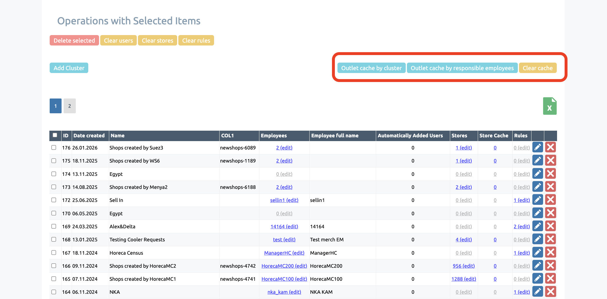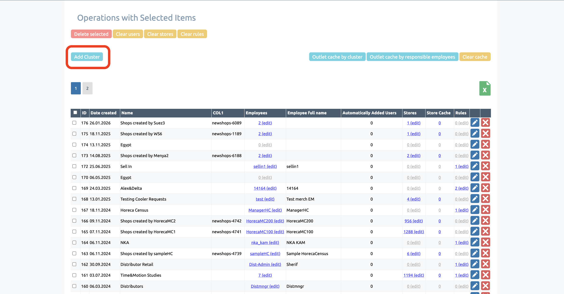 In addition, clusters allow you to update the assignment of outlets to users in bulk: adding a shops to a cluster will display it for all employees who have that cluster