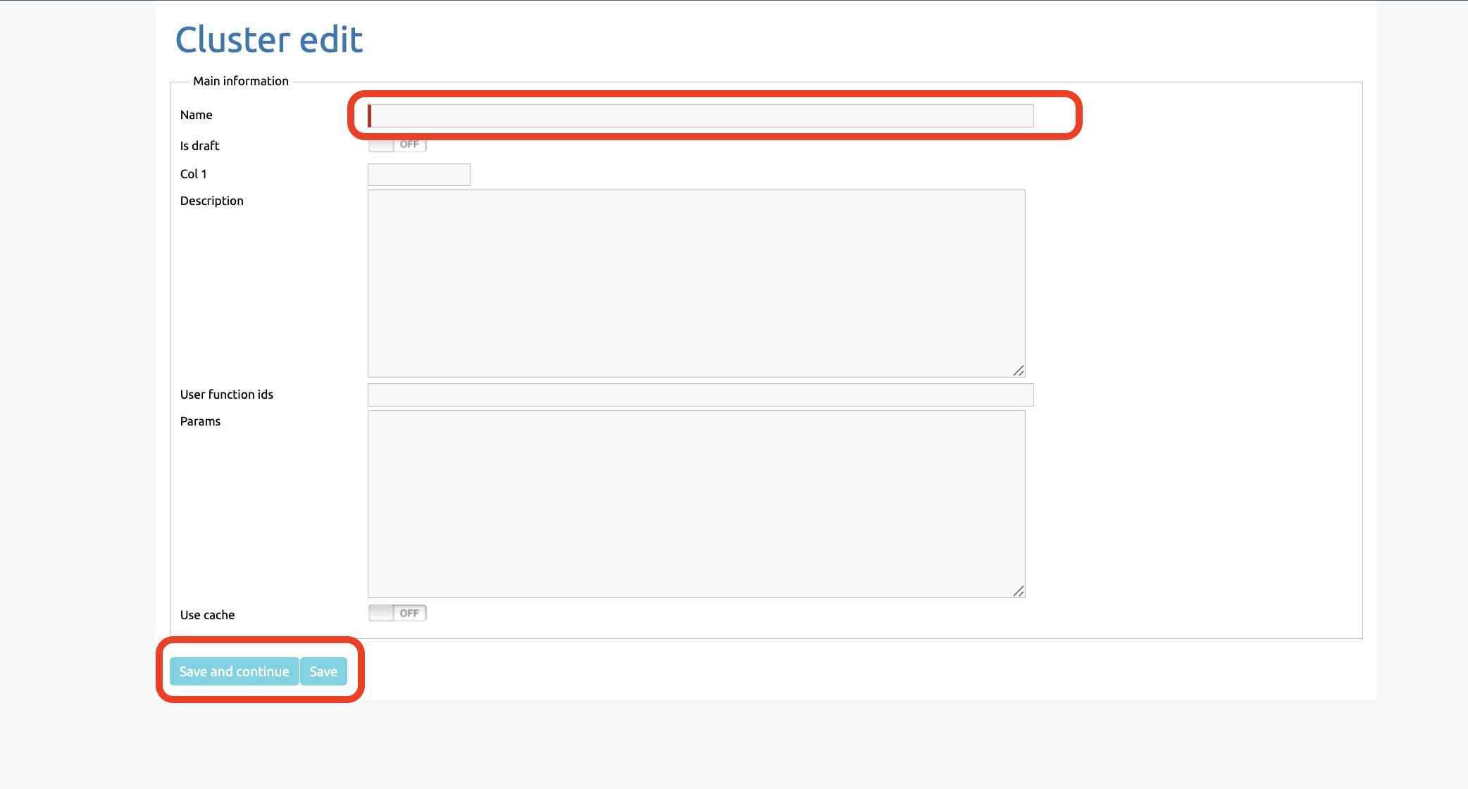 When editing the cluster, enter a name and fill in the other fields as required