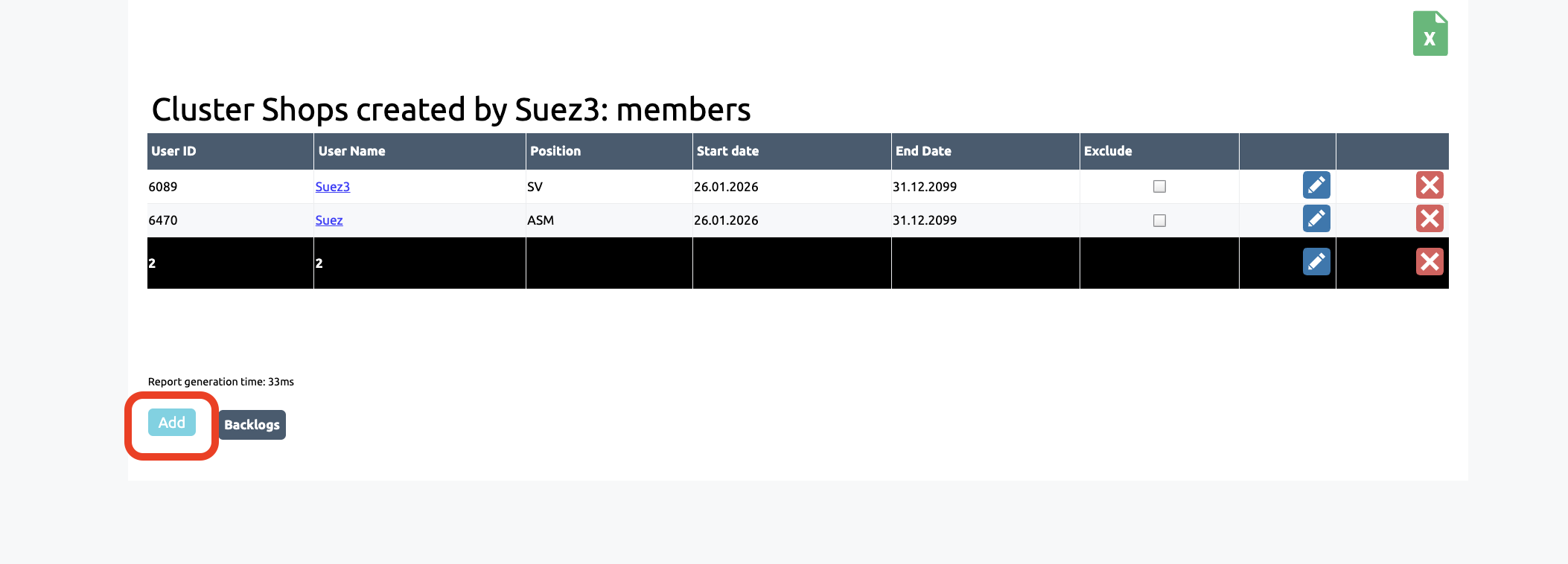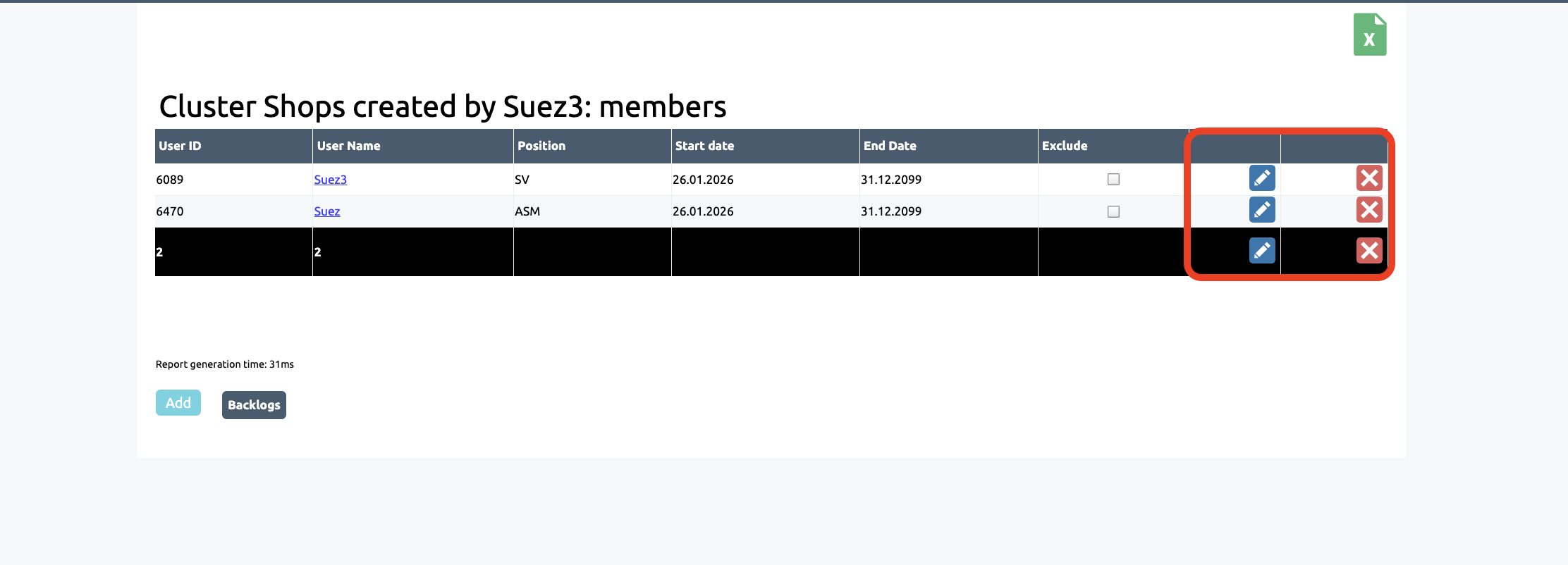 Editing assignments allows you to grant access to shops (and their reports, if authorised) for earlier dates by editing the start date of the assignment, as well as to remove an employee’s assignment or change the end date of the assignment