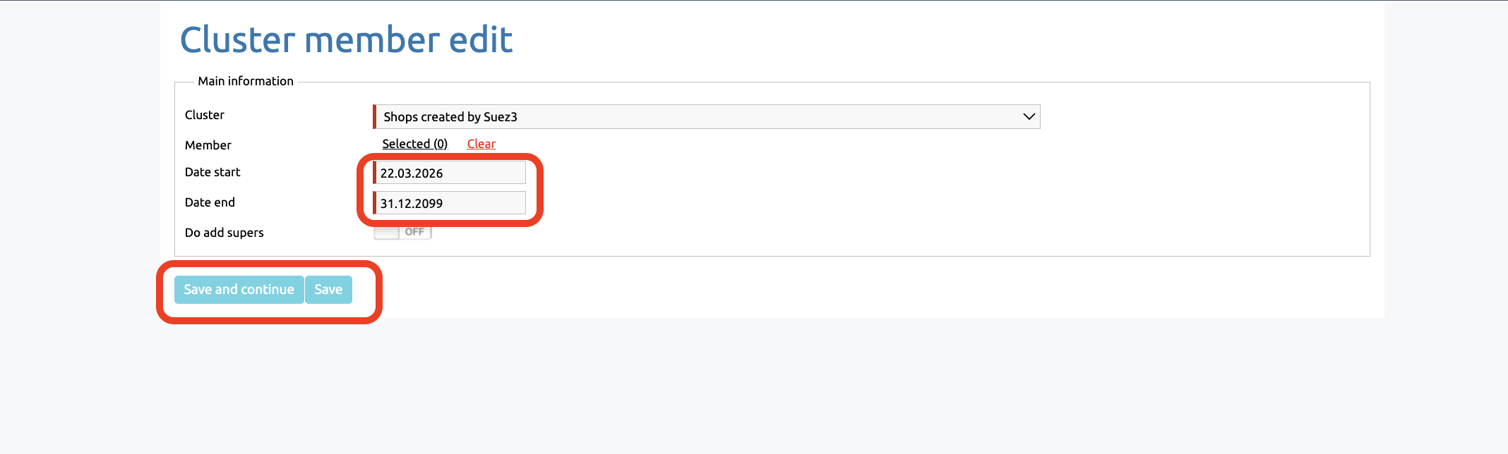 The ‘Do add supers’ setting allows shops from the cluster to be displayed across the entire chain of responsible employees who have this cluster with the setting enabled.