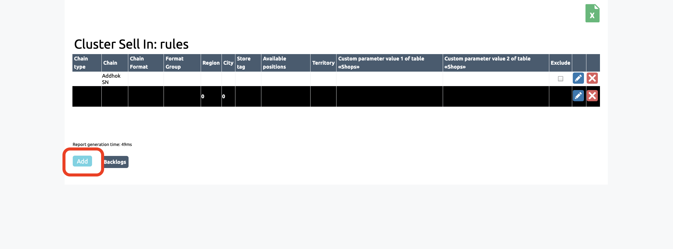Within this section, you can view the rules governing the automatic addition of stores