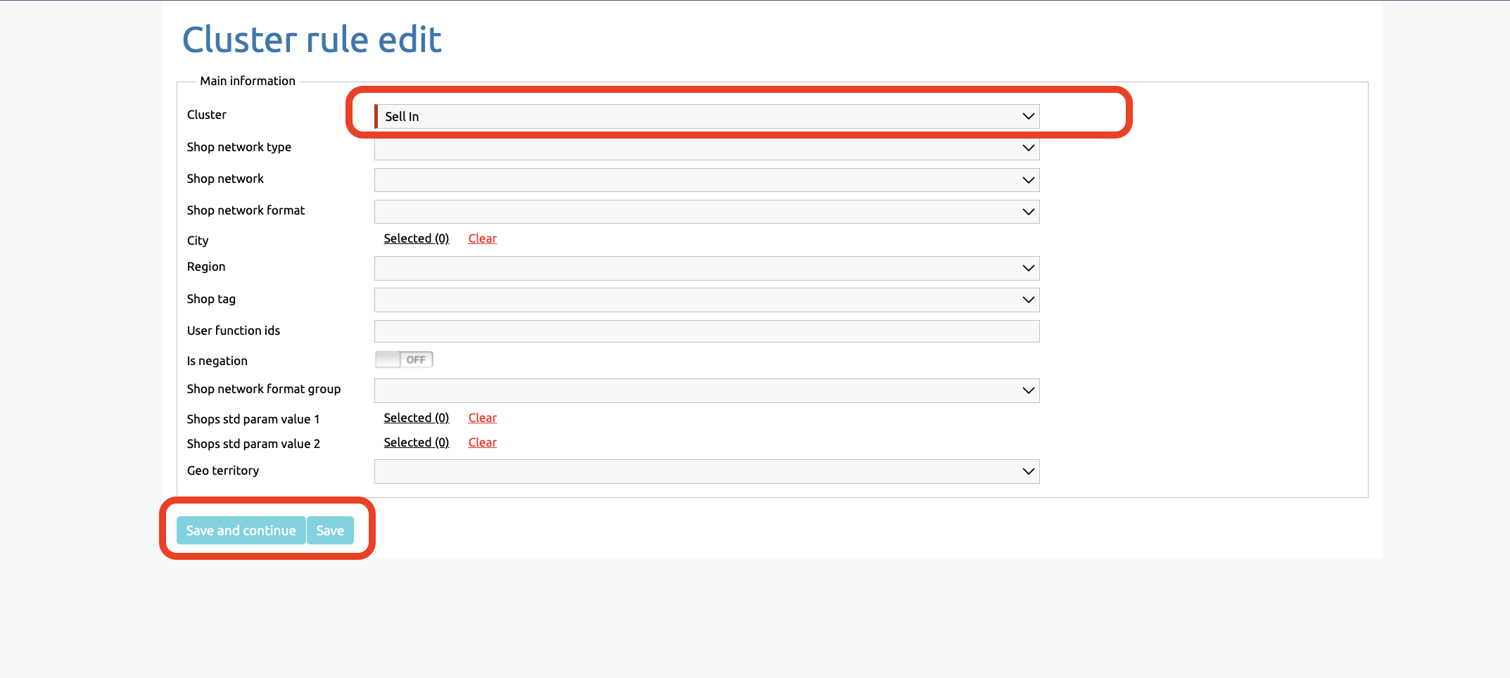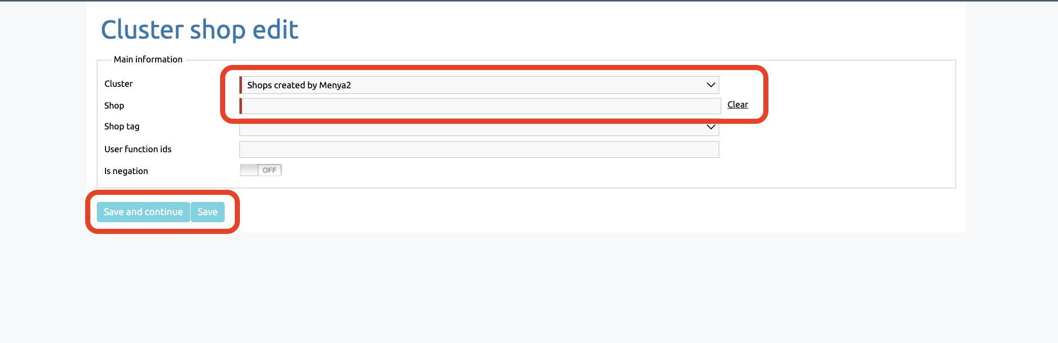 Once you have created a cluster, you can add rules to it that determine which shops are displayed within the cluster.