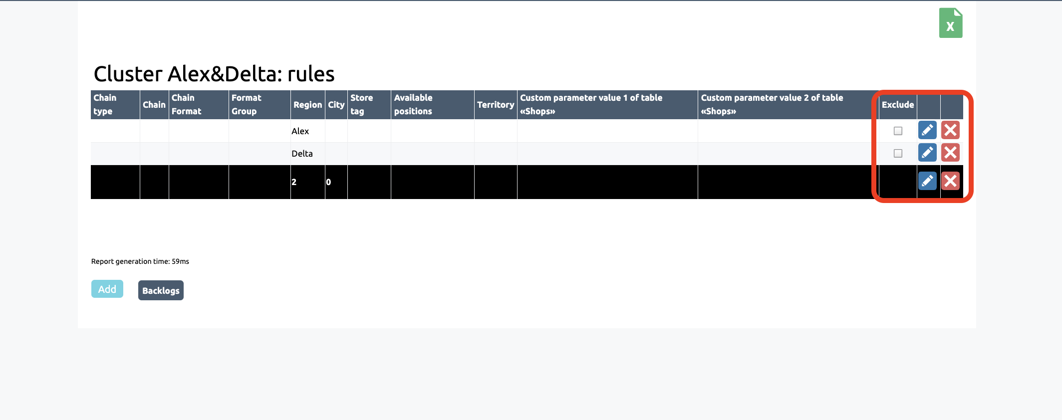 To do this, return to the previous page (the cluster rules section) and click on the pencil icon to edit