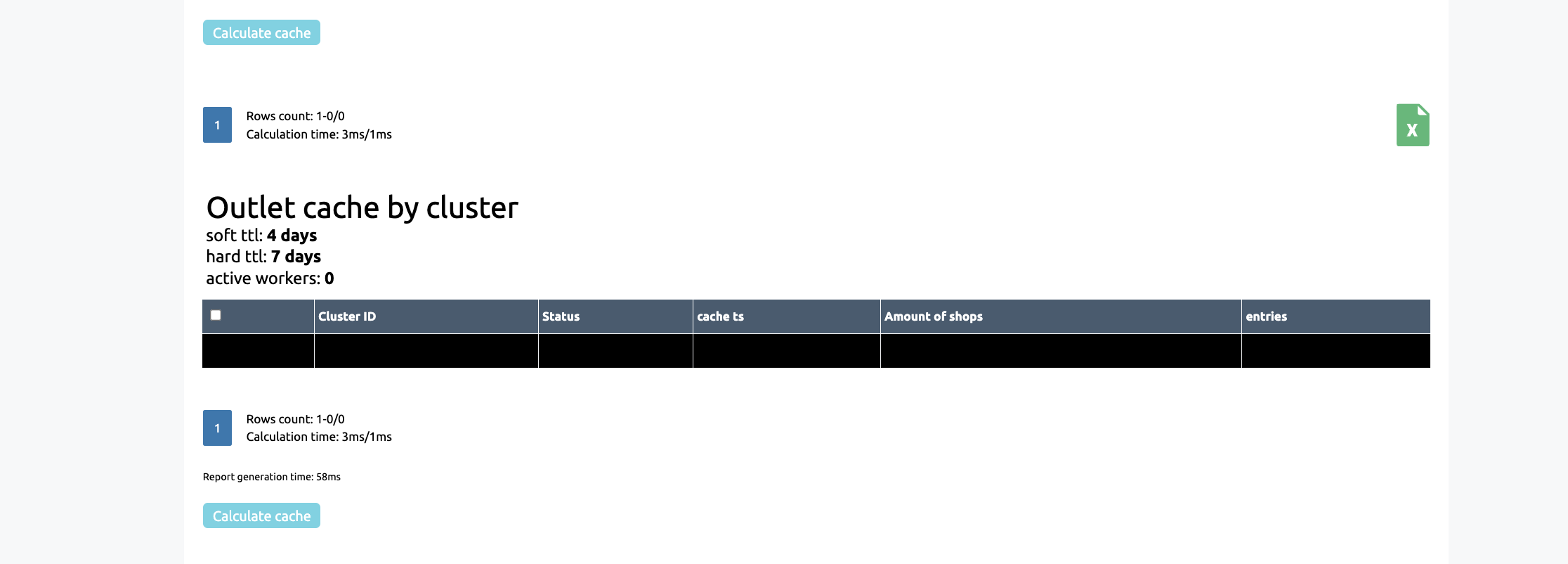 Go to the ‘Outlet Cache by Clusters’ or ‘Outlet Cache by Responsible Persons’ section to view the current cache by clusters or responsible persons